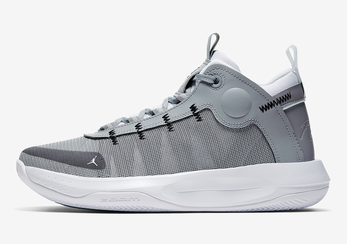 In the midst of all the attention drawn towards the unveiling of the product, Jordan Brand has also been cooking up additional performance hoop alternatives such as the Jordan Jumpman 2020. After revealing this model in a classic Chicago Bulls colorway last week, Jordan Brand once again shows their penchant for bringing iconic color schemes to their modern silhouettes with the release of this brand new “Particle Grey” makeover. These two-toned renditions feature a webbed mesh grey upper that is merged with grey leather overlays arriving around the ankle collars, heels, and lacestays as well as an assortment of Jumpman logo branding dispersed throughout – presenting a palette closely resembling that of classic Jordan “Cool Grey” retro models. Moving downward, the midsole unit is dressed in white and highlights its Zoom Air unit with an icy blue-tinted Jumpman window present in the forefoot to conclude its stylings. If you’re in the market for some new basketball shoes, these are now available on Nike.com for $110 USD so enjoy a gallery of official images here below to take a closer look.